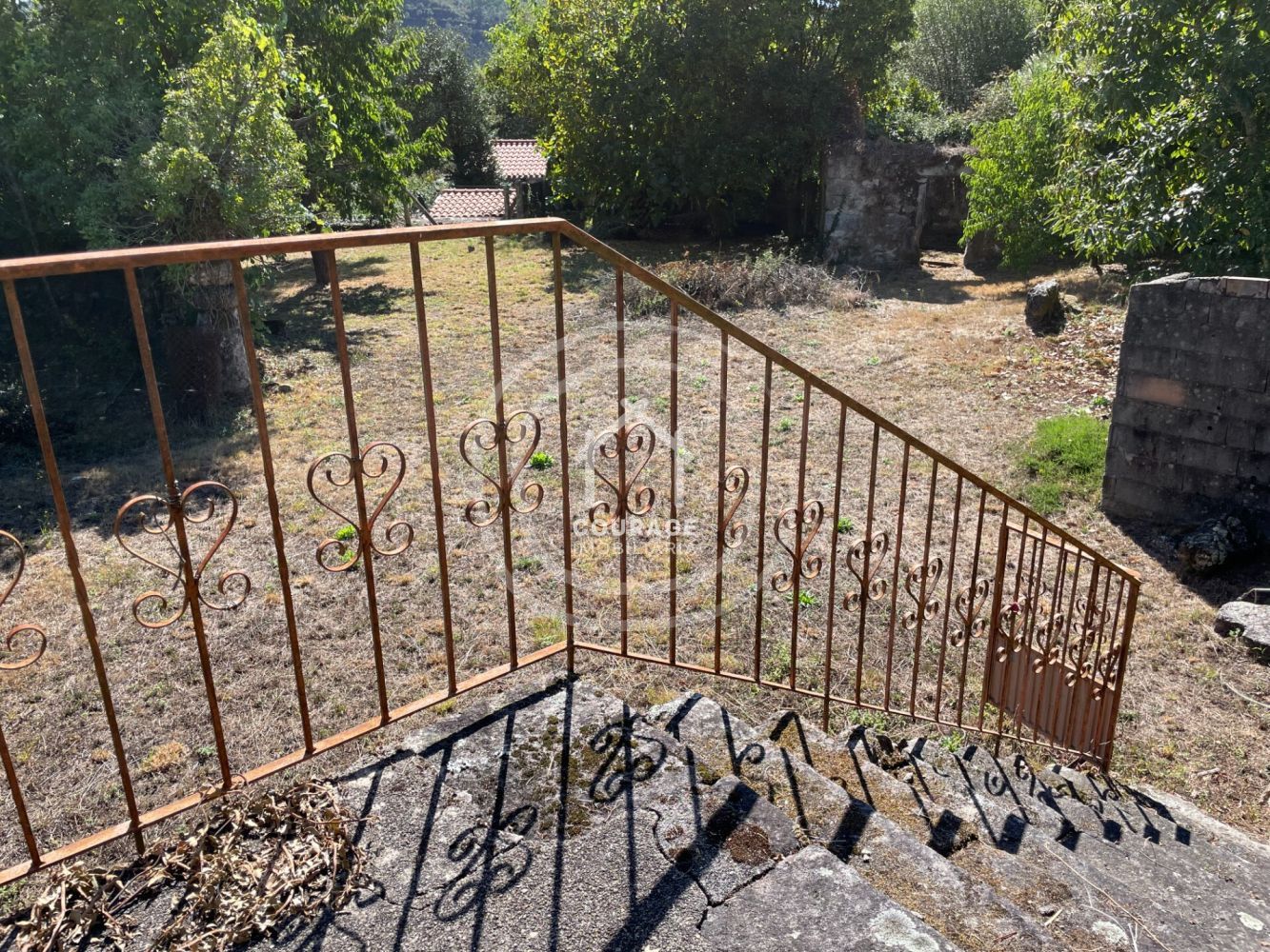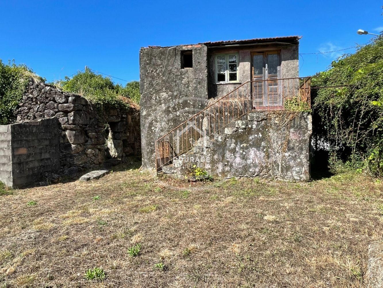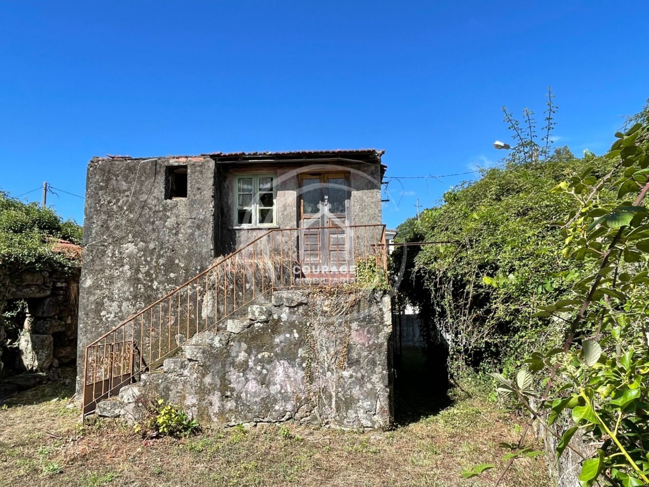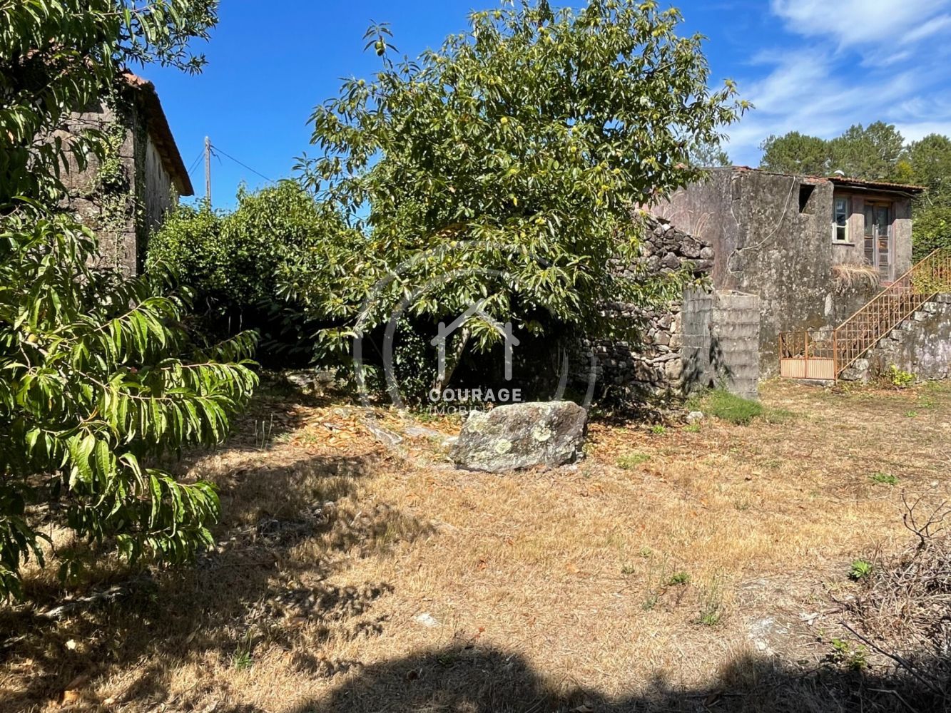 Propriedade com moradia de pedra para recuperar inserida num terreno com 800m2 e mais 4 anexos de pedra, na freguesia de Romarigães, concelho de Paredes de Coura. A casa está divida em dois pisos, com aproximadamente 50m2 em cada piso de área útil, precisa de uma recuperação completa. É uma moradia geminada, mas que consegue ter toda privacidade, pois tanto a casa como o terreno estão virados para o exterior, não tendo visibilidade com o vizinho que está contíguo. Dispersos no terreno estão mais 4 anexos de pedra em ruínas. Dos anexos um encontra-se junto à moradia e os restantes estão dispersos pelo terreno. Esta disposição dos anexos permite que estes sejam reconvertidos em mais espaços independentes de suporte à moradia, ou até em pequenas unidades individualizadas. Com vistas desafogadas para campos e montes, terreno é todo plano e tem diferentes árvores de fruto e também árvores de grande porte que conferem sombreamento na época de verão, dando bastante charme e encanto ao espaço exterior. Encontra-se num pequeno aglomerado habitacional, muito tranquilo, sossegado e de envolvente rural, numa rua de acesso apenas a duas casas. A zona possui todas as infraestruturas públicas necessárias (saneamento, água e eletricidade) e conta ainda com acesso à internet de fibra ótica. A moradia localiza-se na freguesia de Romarigães, aproximadamente a 12 km, 18 minutos de carro, do centro da Vila de Paredes de Coura, onde encontra todos os serviços básicos e acesso a todos bens necessários para a vida do dia-a-dia, assim como diversas ofertas de lazer e cultura. Fica a cerca de 20 minutos do centro de Ponte de Lima, 25 minutos de Vila Nova de Cerveira e a cerca de 1hora da cidade do Porto. Este imóvel tem ótimas caraterísticas e envolvente para uma moradia de campo, permanente ou como casa de férias ou um refúgio para recarregar energias, e tem todo potencial para um investimento para turismo rural, pois tem espaço exterior e edifícios onde facilmente consegue criar várias unidades independentes. É uma excelente zona para apreciar a calma do campo, com natureza em volta, mas com todo conforto. Marque a sua visita e venha conhecer!